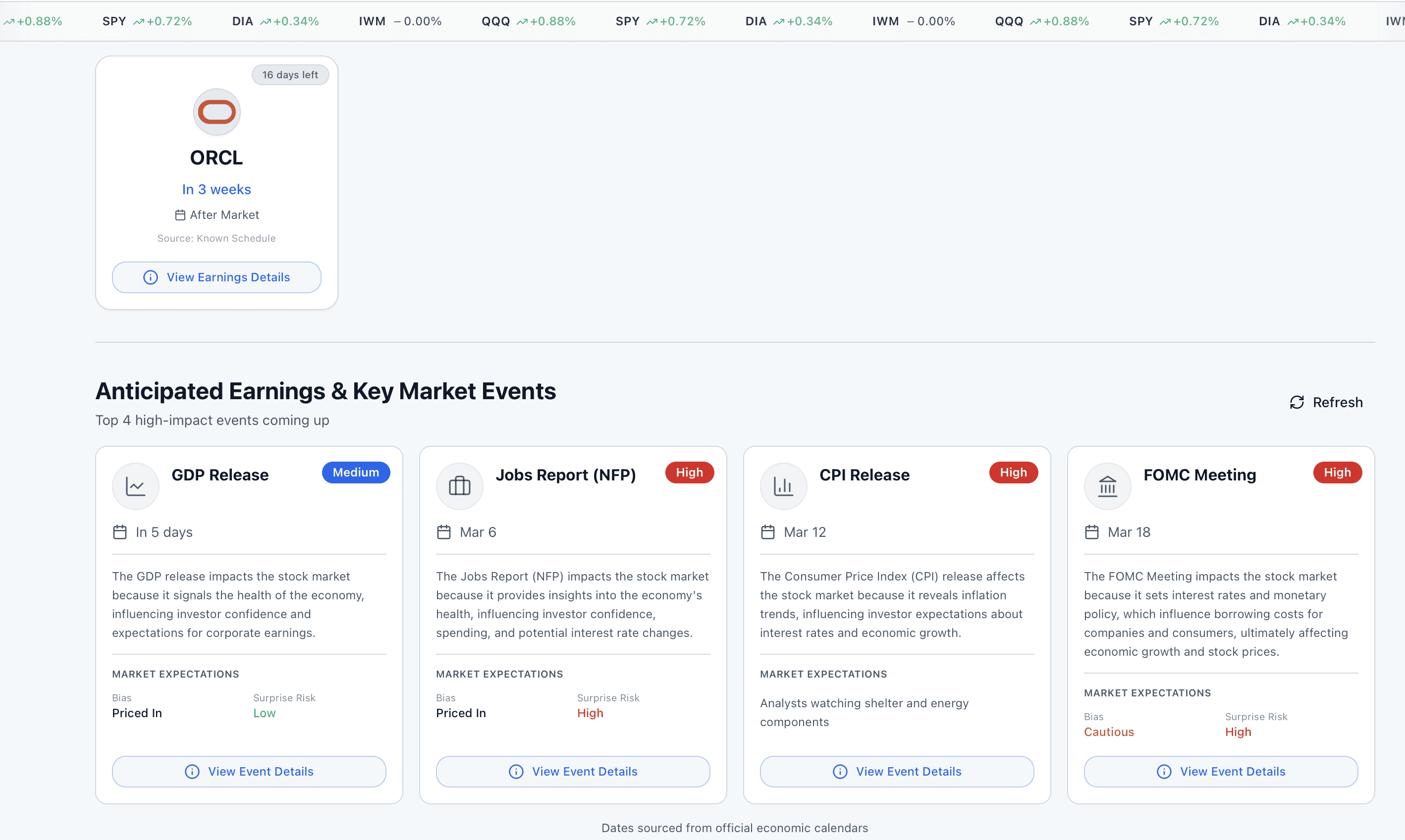 Never miss earnings, Fed meetings, CPI, or key macro events that move your stocks.
